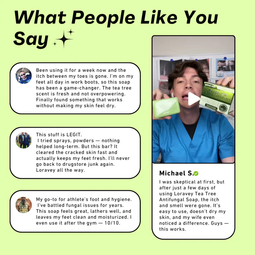 Been dealing with Athlete's Foot for 7 years. Every cream, spray, and powder - same story. Works briefly then comes back worse. The constant itch was driving me insane. This soap broke the cycle in 3 weeks. Haven't scratched my feet once in 2 months. Should've found this years ago.